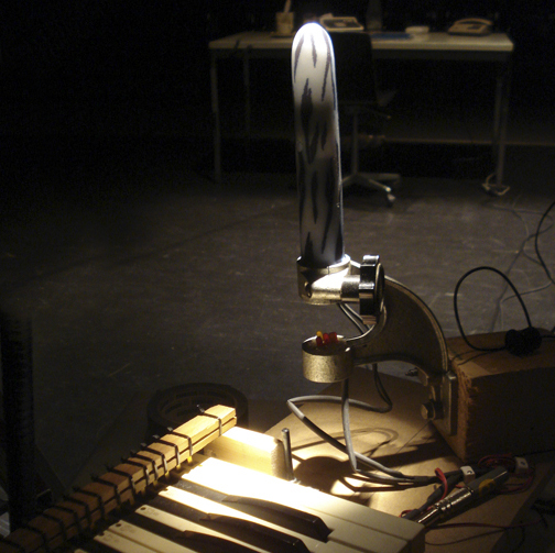 The Voltage Controlled Vibrator was build for the theater play "Liebes Ferkel...Briefe an eine Hure". The topic of the play was prostitution.