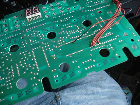 There are two potentiometers to control the pitch of the sounds and the speed of the triggering of the sounds. This is made with a simple oscillator (CMOS 40106). |
