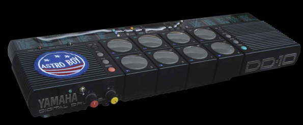 On this little drumcomputer there are now six additional switches. By aktivating one of them, the instrument plays one sound of the instrument in an unrhythmic and unpredictable way. It seems like the machine is flipping rhythmpatterns stored in its internal memory.