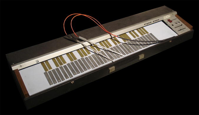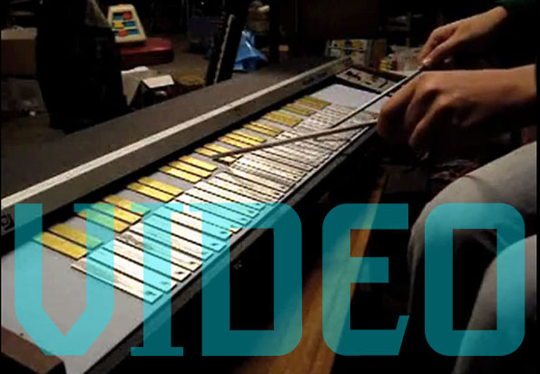 I bought this old electronic piano on a flea market. The seller told me that it works just fine. But that was a lie. The keyboard was rotten to death and did not work at all. So what to do? I decided to build me an electronic xylophon. Each former key had to be replaced by a metal plate and wired to the corresponding voice. Two metal sticks act as the beaters and are connected to a +3 volt bus. If you touch one ore more plates with the sticks it is as you would press down one or several keys. A sometimes even sparkling experience.