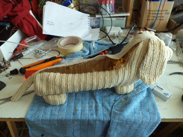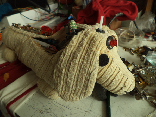 There is a switch to add a slight vibrato to the sound. the speed of the vibrato can be adjusted by a potentiometer. Another switch puts the "Hot Dog" into barking mode. |