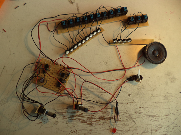 "Hot Dog" is the first ever useful update with a keyboard to play a melody. I used old switches from a computer keyboard to build it. It has 13 keys so you can play a complete octave.