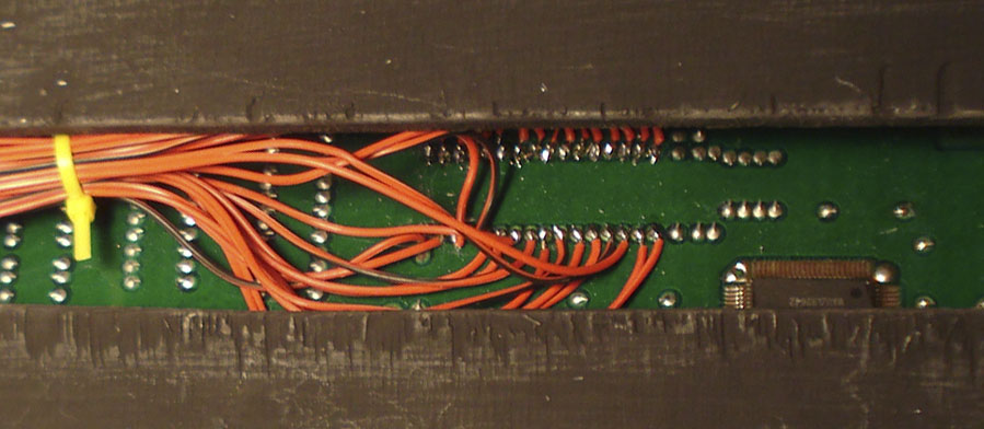 Circuit Bending a Yamaha PSR 37. A 32 point patchbay connecta the pins of the soundchip.
